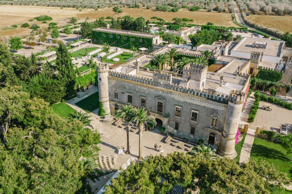 For couples with a large guest list, Castello Monaci offers something most masserias cannot: genuine scale without a corresponding drop in quality. The 16th-century castle in Salento’s interior accommodates up to 500 guests, with extensive indoor and outdoor spaces across historic gardens and castle grounds.