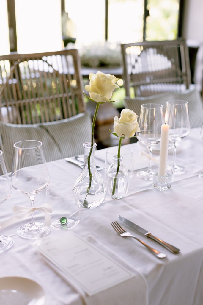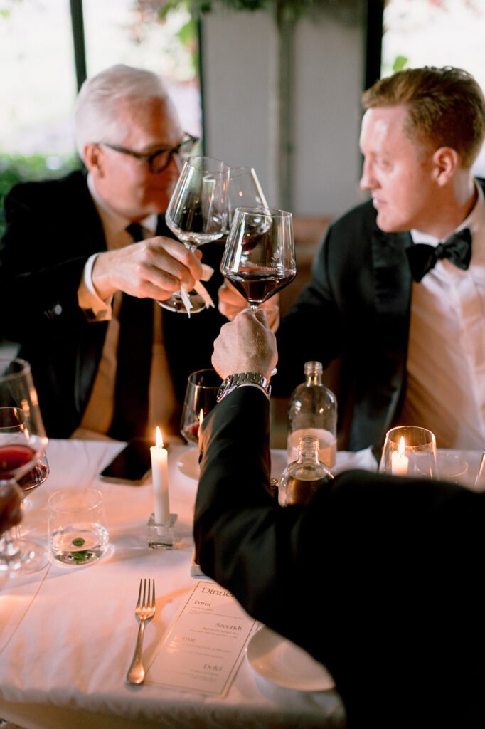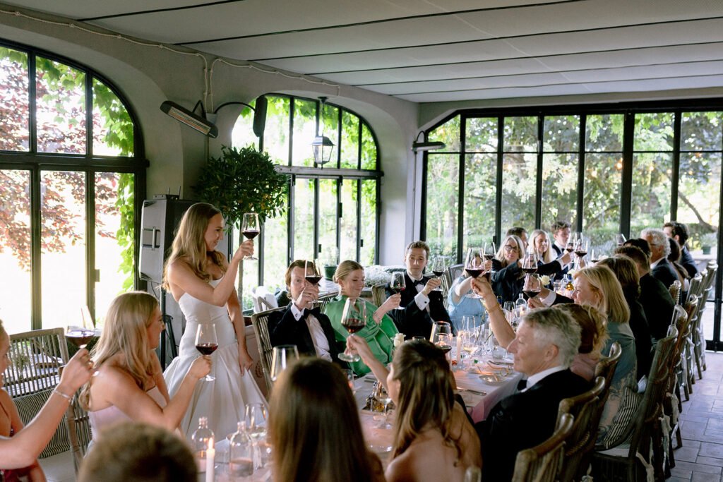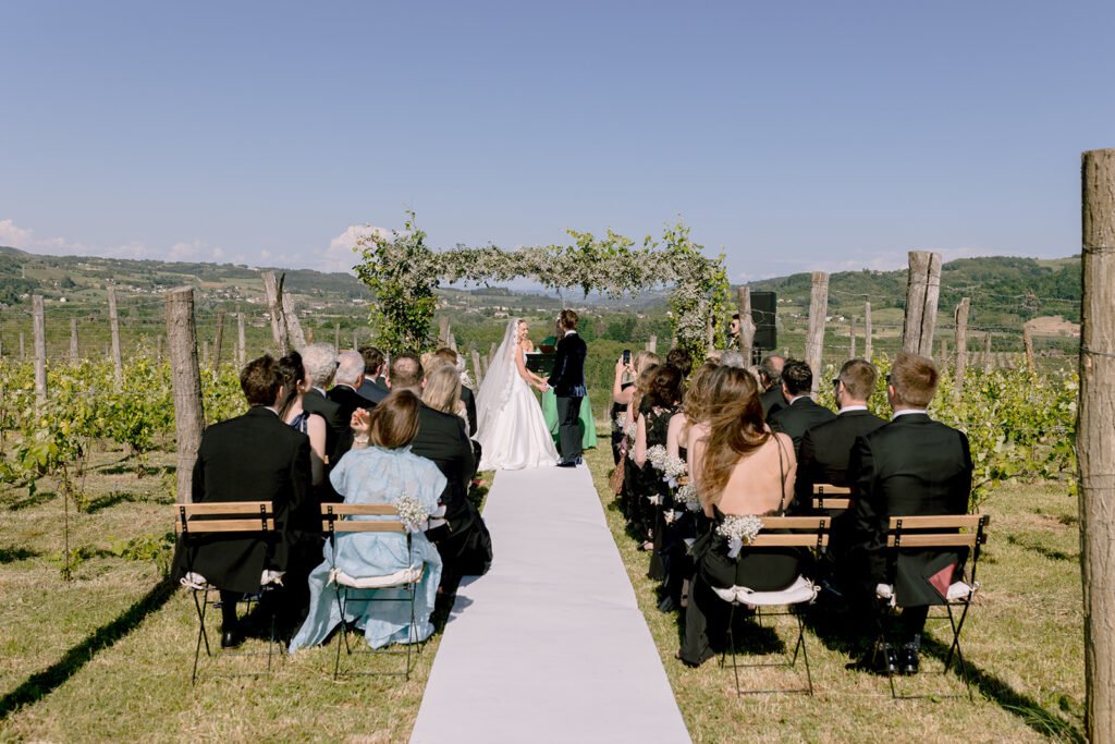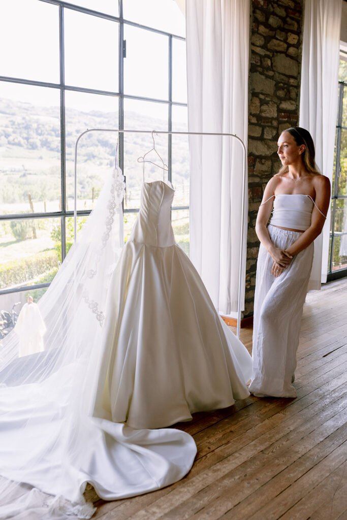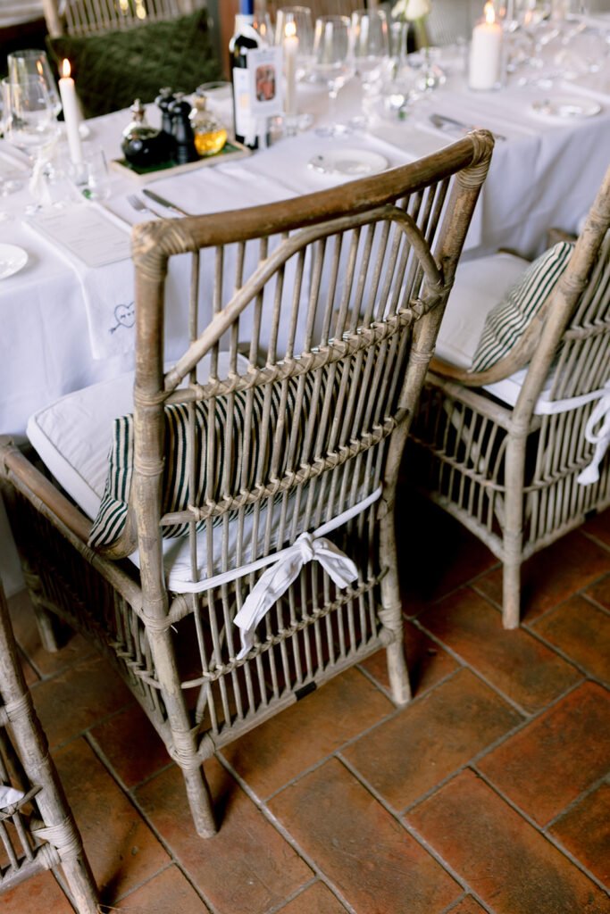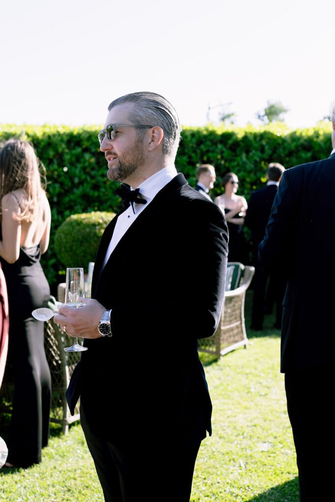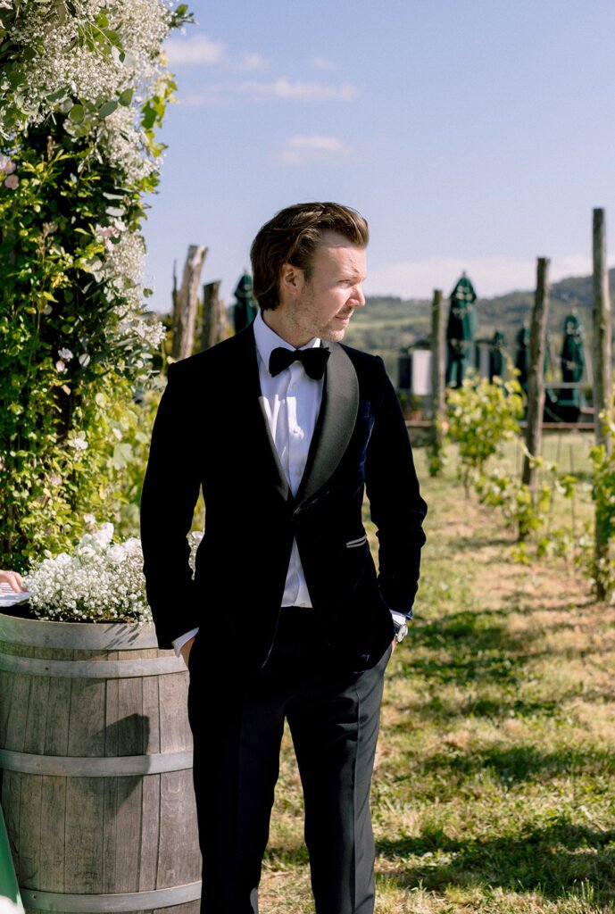 The mood of the day was remarkably relaxed, a rare feat for such a high-end celebration. Madeleine and Thomas prioritized a day that felt like a seamless flow of moments rather than a rigid schedule. From the morning preparations in the villa’s Scandi-chic suites—filled with mid-century vintage finds and flooded with soft Italian light—to the ceremony overlooking the terraced vineyards, every detail was handled with the villa’s signature finesse. As their photographer, I focused on the “unscripted” editorial shots: the way the light hit the artisanal table settings and the genuine, joyful intimacy shared between the couple and their closest circle.