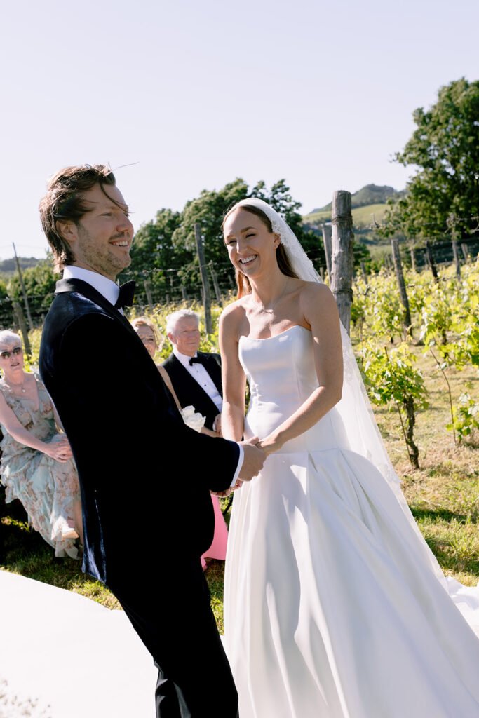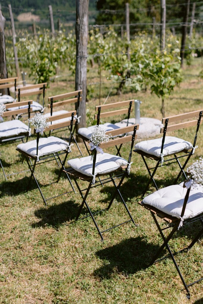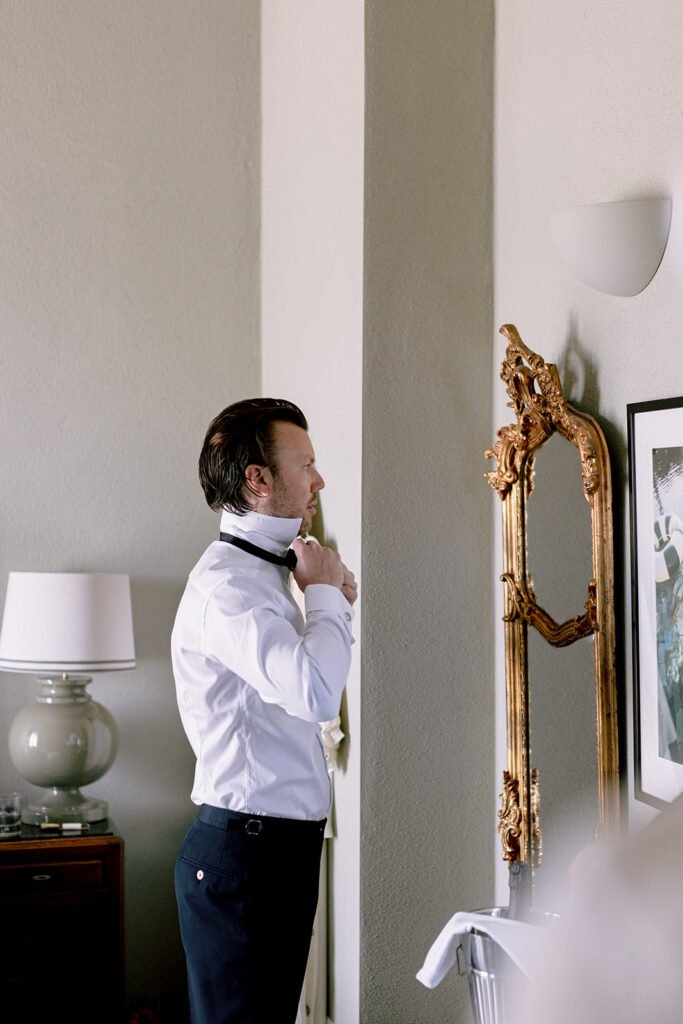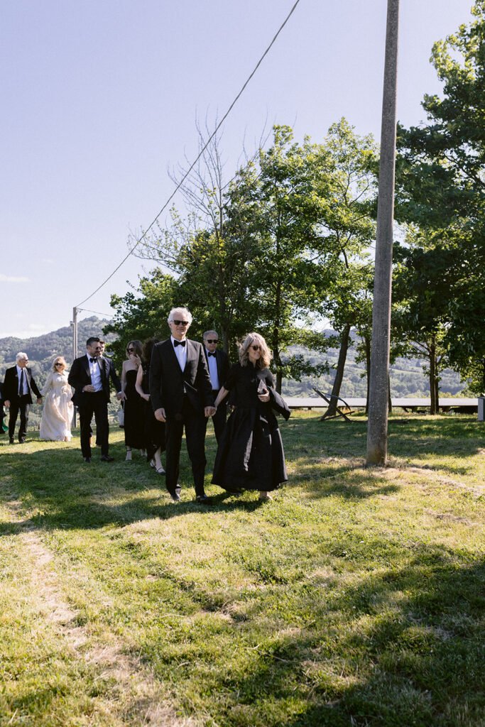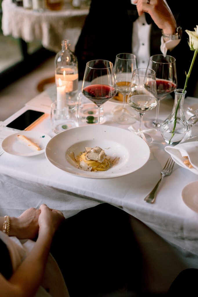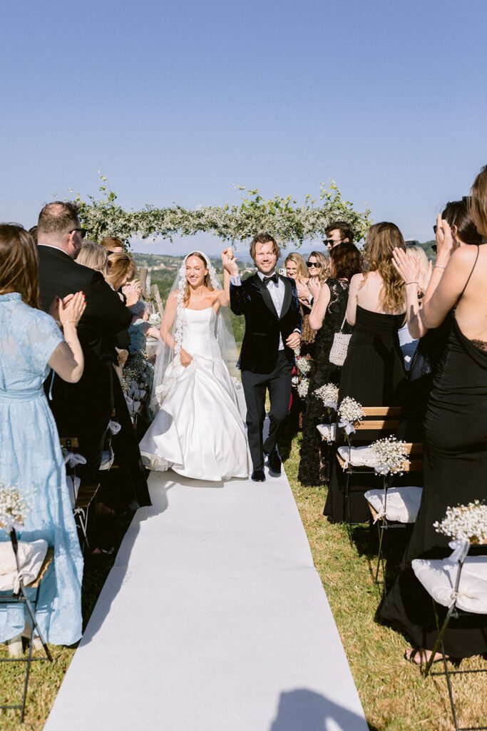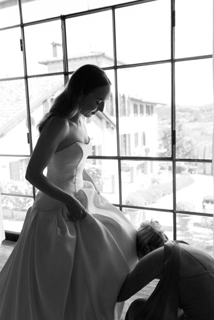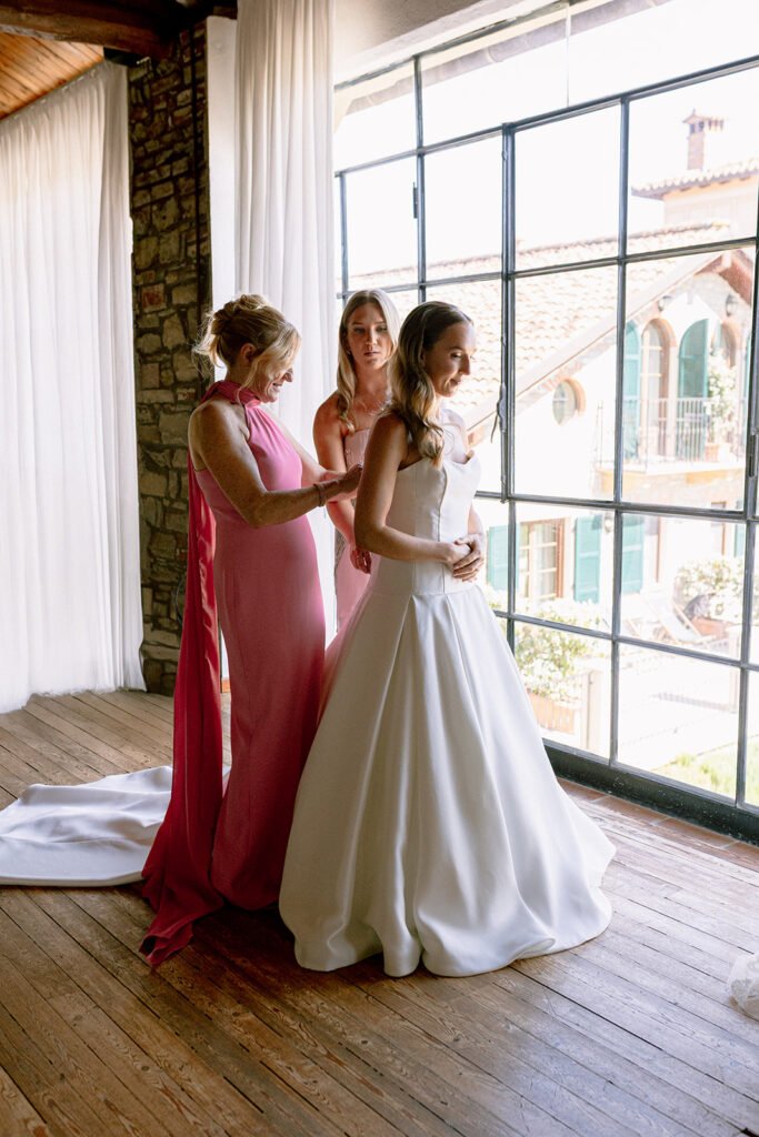 The mood of the day was remarkably relaxed, a rare feat for such a high-end celebration. Madeleine and Thomas prioritized a day that felt like a seamless flow of moments rather than a rigid schedule. From the morning preparations in the villa’s Scandi-chic suites—filled with mid-century vintage finds and flooded with soft Italian light—to the ceremony overlooking the terraced vineyards, every detail was handled with the villa’s signature finesse. As their photographer, I focused on the “unscripted” editorial shots: the way the light hit the artisanal table settings and the genuine, joyful intimacy shared between the couple and their closest circle.