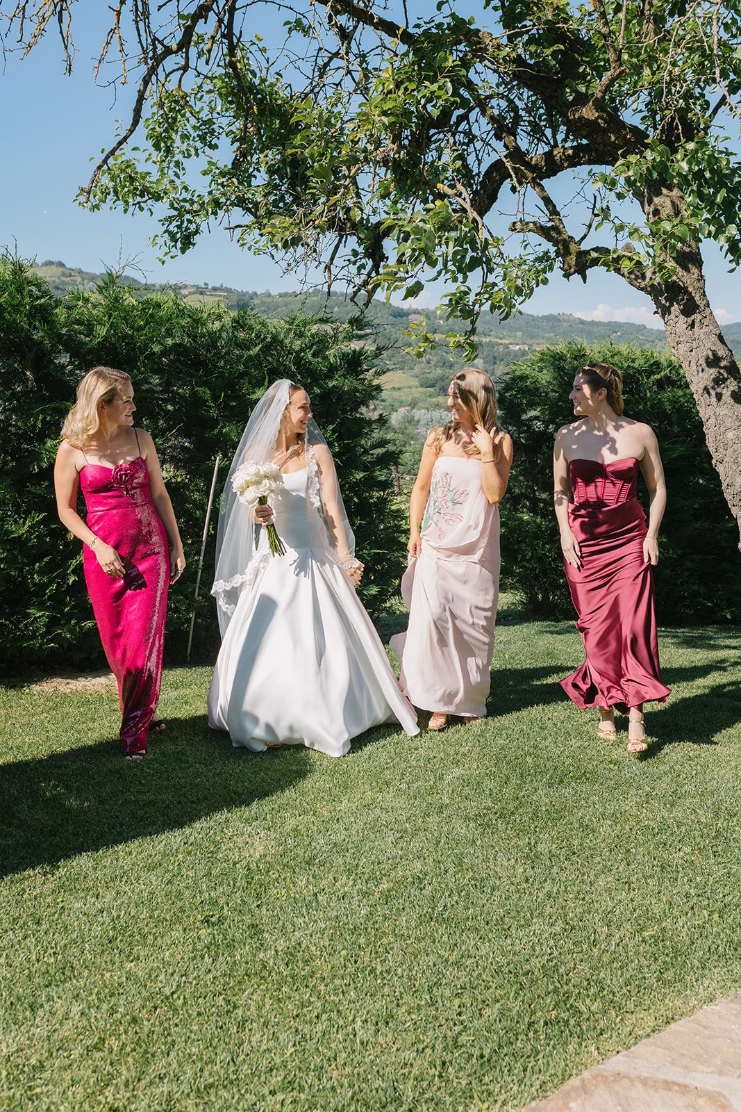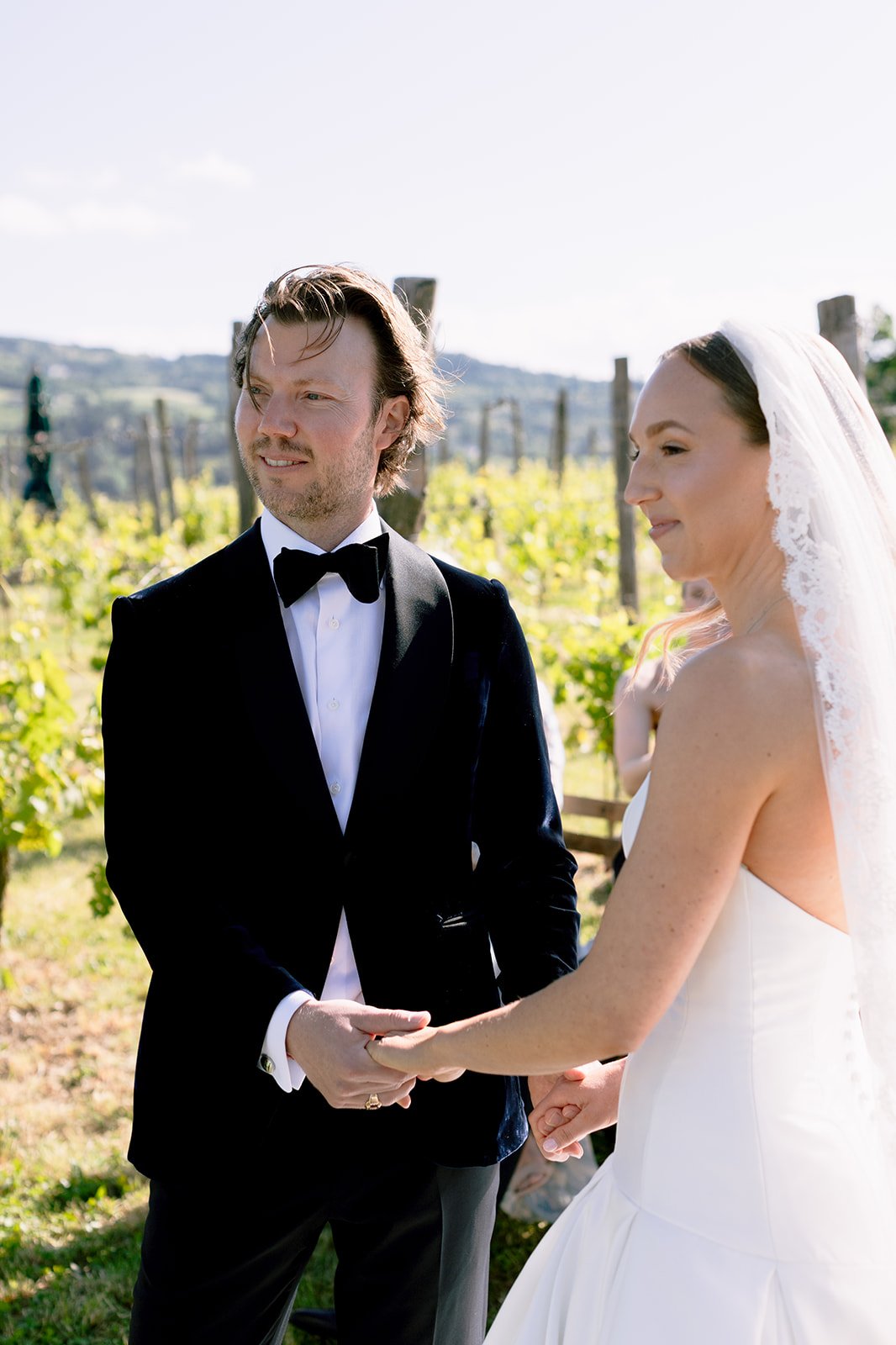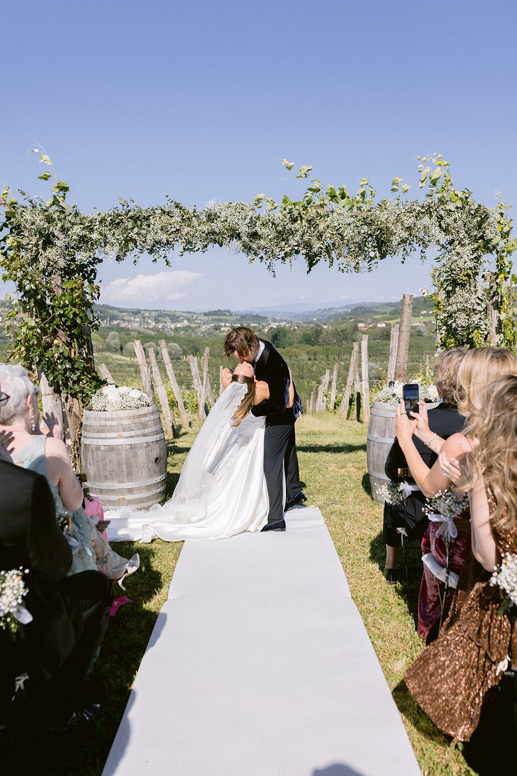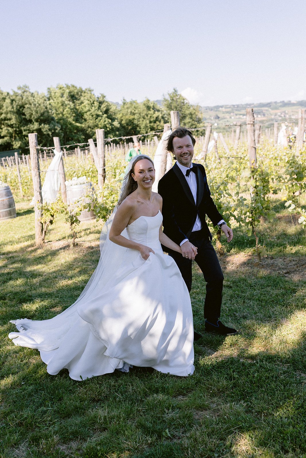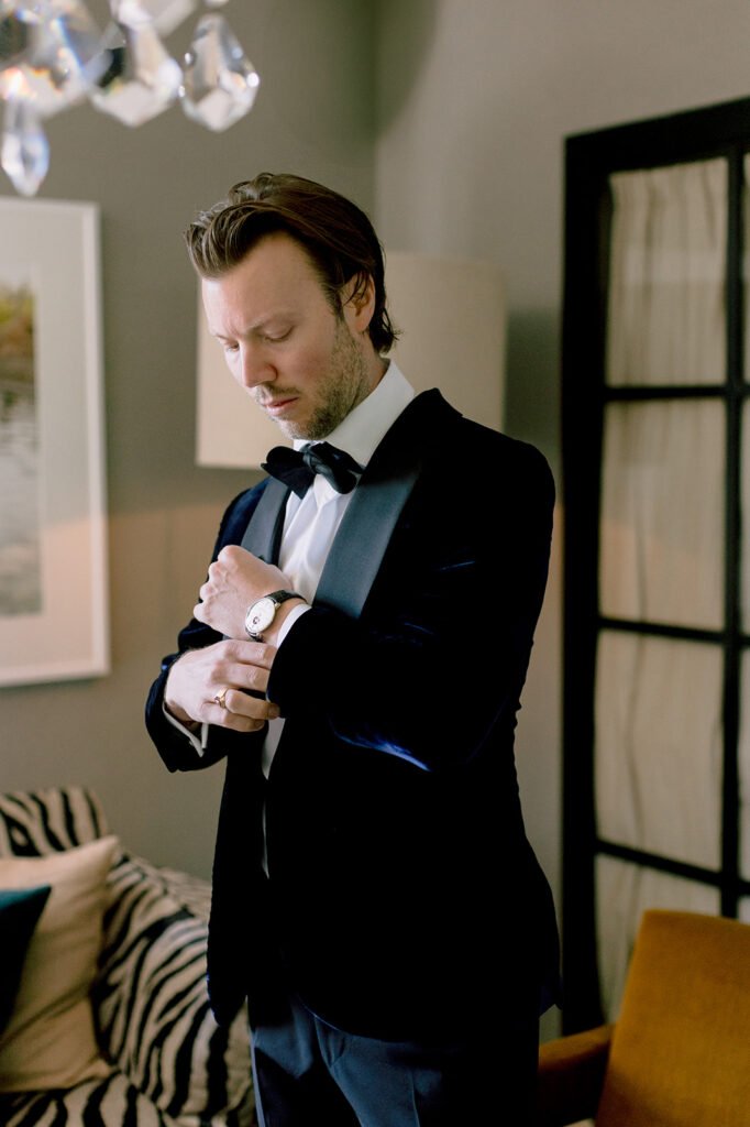 The mood of the day was remarkably relaxed, a rare feat for such a high-end celebration. Madeleine and Thomas prioritized a day that felt like a seamless flow of moments rather than a rigid schedule. From the morning preparations in the villa’s Scandi-chic suites—filled with mid-century vintage finds and flooded with soft Italian light—to the ceremony overlooking the terraced vineyards, every detail was handled with the villa’s signature finesse. As their photographer, I focused on the “unscripted” editorial shots: the way the light hit the artisanal table settings and the genuine, joyful intimacy shared between the couple and their closest circle.